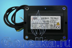 Трансформатор розжига COFI TRS1020/21 предназначен для поджига горючей смеси высоковольтной электрической дугой создаваемой между электродами поджига. Трансформатор поджига COFI TRS1020/21 имеет следующие характеристики: Напряжение питания 230 В / 50 Гц. Напряжение поджига 2 х 5 kV. Мощность 1.1 А. Ampl 14 kV. Ток поджига 20 мА. ED 25% при 4 мин. Штекерный разъем питания. Штекерный разъем кабеля поджига диаметром 4 мм.